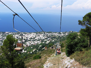 Iz Kaprija smo se uputile u Anakapri, do kojeg smo stigle lokalnim autobusom. I to mesto je simpatično, a najveći doživljaj mi je bio vožnja uspinjačom sa otvorenim kabinama u koje staje samo po jedna osoba. Uspinjačom se stiže do najviše tačke ostrva - vrha Monte Solaro, koji se nalazi na 589 m nadmorske visine. Odatle puca pogled na morsko plavetnilo, Napuljski zaliv i Vezuv.